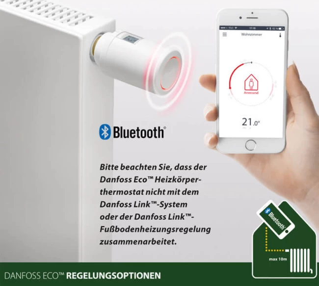 - Programmierung der Thermostate über Bluetooth aus bis zu 10m Entfernung