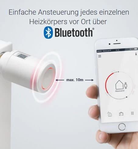 - Einfache Ansteuerung jedes einzelnen Heizkörpers über eine App auf Bluetooth-fähigen Smartphones