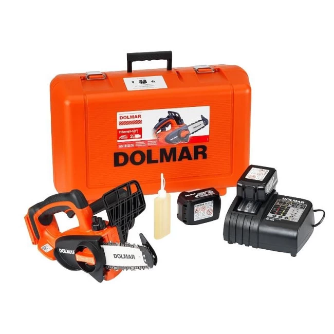 Die DOLMAR Akku-Motorsäge arbeitet äußerst geräuscharm und ohne störendes Kabel. Durch besonders dauerhaften netzunabhängigen Antrieb, kompakte Bauweise und geringes Gewicht eignet sich die Säge ideal zum unkomplizierten Ausasten und zum Rückschnitt von Bäumen.