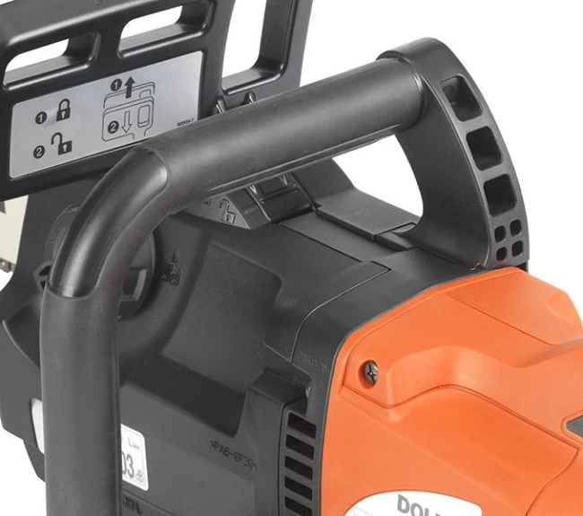 - Werkzeugloser Kettenspanner mit klappbarem Drehgriff und kleinem Rad für noch einfacheres Montieren und Spannen der Sägekette