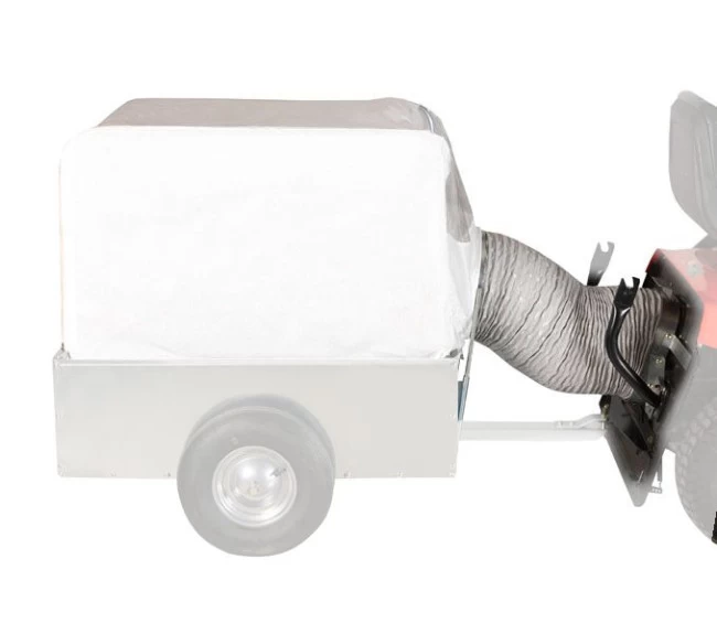 Grasfangeinrichtung für 102/122-Modelle. Flexibler Fangschlauch zur Montage am Heckauswurfkanal, Sammelvolumen bis 700 Liter, verzinkter Rohrrahmen und wetterfeste Plane