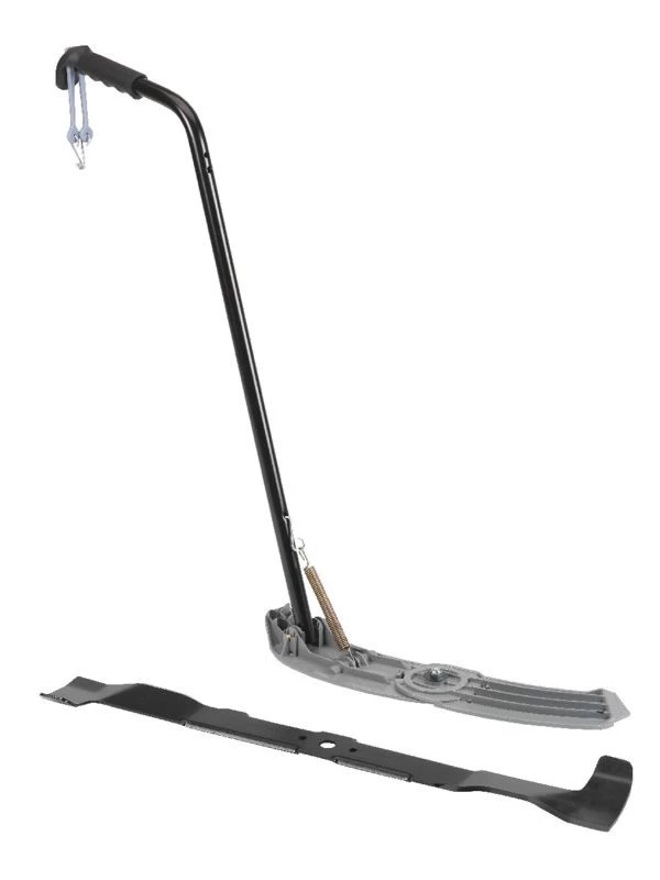 Das Mulchkit besteht aus Mulchmesser und Mulchkeil. Durch Verschließen der Auswurföffnung im Mäherdeck und die Verwendung von 2 speziellen Messern wird der Rasentraktor zum Mulchmäher. Das Gras wird durch die spezielle Messerform sehr fein gehäckselt und auf dem Rasen verteilt.