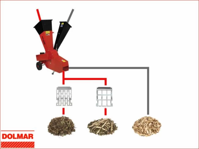 DOLMAR Häcksler PH-6504 Problemlose Verarbeitung von Ästen bis 65 mm Ø Kraftvoller Elektromotor (PH-6504) Mit integriertem Fahrwerk für schnelles, einfaches Umsetzen Langlebige, hochwertige und unempfindliche Pulverbeschichtung 30 pendelnd aufgehängte Schlaghämmer (Schreddern) Messerscheibe mit gehärtetem Messer (Häckseln) Wahlweise grobes oder feines Schreddergut Serienmäßig: Zwei wechselbare Langlochgitter.