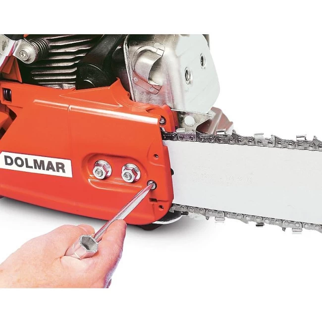 - Seitliche Kettenspannung für schnelles und bequemes Spannen der Sägekette