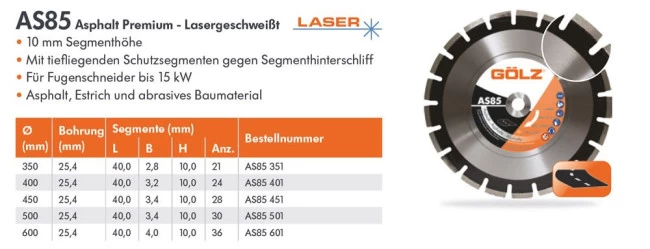 GÖLZ AS85 Premium Diamant-Trennscheibe Ø 350 bis 600 mm