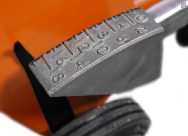 - stufenlose Schnitttiefeneinstellung mittels Gasdruckfeder und Fusspedal
