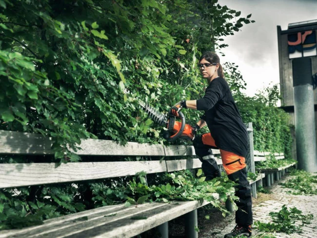 Diese leichte Akku Heckenschere zeichnet sich durch einen besonders leisen, vibrationsarmen und natürlich emmissionsfreien Betrieb aus – sie ist somit perfekt für den professionellen Einsatz. Mit einer doppelseitigen 70cm Schneidgarnitur ausgestattet liefert sie eine Schnittgeschwindigkeit von 4000 Hüben pro Minute. Der neue von Husqvarna entwickelte Motor, kombiniert mit dem leistungsstarken Akku erlaubt eine maximierte Einsatzdauer. Der drehbare hintere Griff erleichtert das horizontale wie vertikale Schneiden.