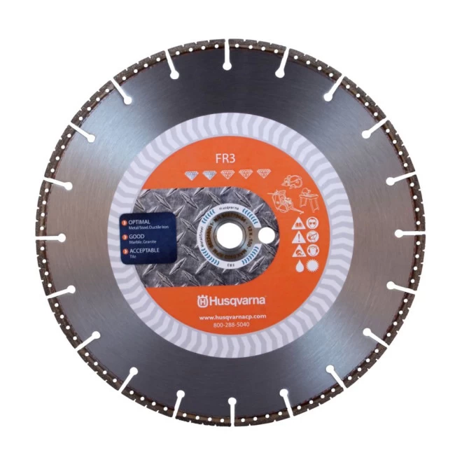 Die Diamanttrennscheibe FR 3 von HUSQVARNA ist für Rettungseinsätze geeignet und kann mühelos zum Trennen von Beton, Stahl, Fliesen, Stein, Ziegel, Gummi, Holz, Fieberglas, PVC, Eisen, Plexiglas und Gusseisen verwendet werden. Die vakuum gelaserten Diamanten in der Trennscheibe gewährleisten zudem eine außerordentlich hohe Schneidleistung.