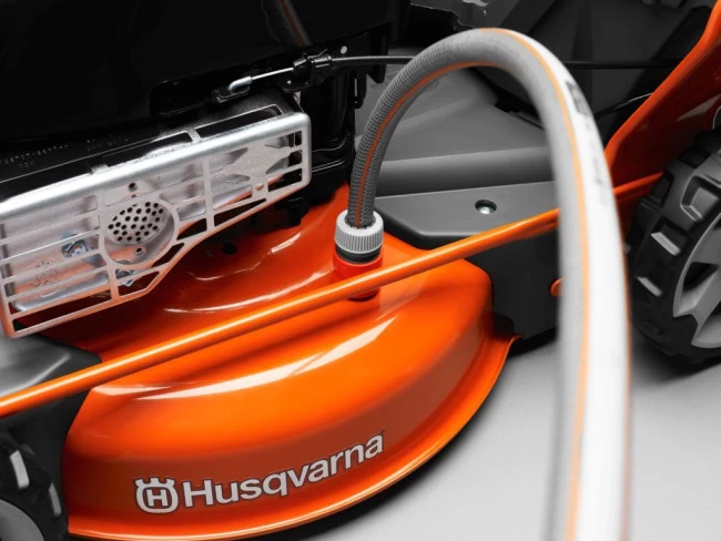 - Wasserschlauchanschluss erleichtert das Reinigen des Mähdecks.
