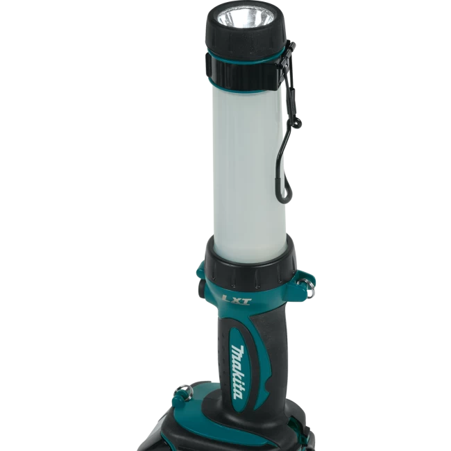 Die Akku-Leuchte DML806 von Makita ist eine kabellose Arbeitsleuchte, die mit 12 LEDs eine hohe Leuchtkraft Lumen entfaltet und sich flexibel den Arbeitsbedingungen anpassen lässt. An der Oberseite ist ein um 360 Grad schwenkbarer Bügel angebracht, der sich bei Nichtgebrauch einklappen lässt. Diese Leuchte lässt sich mit 360°-Leuchtwinkel (Lichtstrom bis zu 620 Lumen) oder 180°-Leuchtwinkel betreiben und ist kompatibel mit Makitas Lithium-Ionen-Akkus der 18 Volt-Familie (nicht im Lieferumfang enthalten). Mit entsprechendem Akku (18V LXT, 5.0 Ah) erreicht die DML806 eine Betriebsdauer von bis zu 11 Stunden im 360°-Modus und 21 Stunden im 180°-Modus.