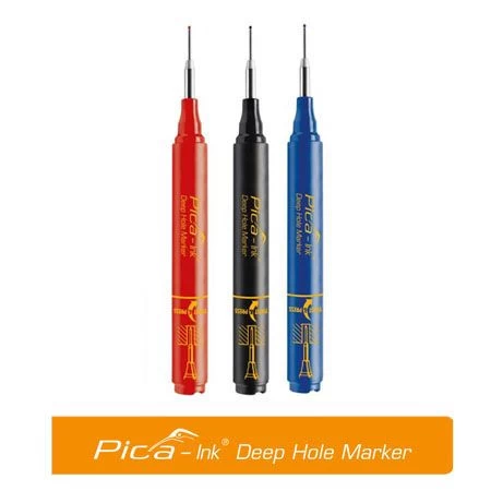 Der Pica-Ink Tieflochmarker ist ideal für schwer zugängliche Stellen geeignet. Durch seine lange und sehr dünne Mine von 2mm Durchmesser und einem Strich von gerade mal 1,5 mm Durchmesser bzw. Strichstärke können Sie zielgenau und sehr präzise auf nahezu allen trockenen Oberflächen markieren. Der praktische Köcherschoner mit Spezial-Clip ermöglicht ein einfaches Tragen an Jacke oder Hose und praxisnah den Einsatz auch mit einer Hand. Die permanente Tinte hat sehr gute Haltwerte ist jedoch mit Alkoholhaltigen Lösungen auch wieder ablösbar.
