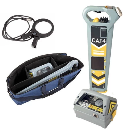 Radiodetection C.A.T4+ Kabelortungsgeräte-Set mit Signalgenerator GENNY4, 100mm Signalzange in praktischer Transport-Tasche